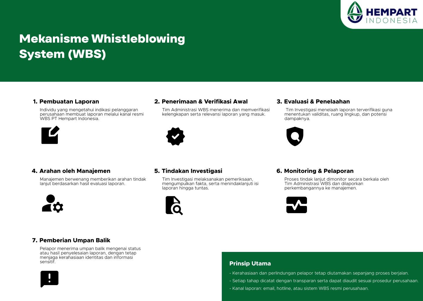 Saluran Resmi Pelaporan WBS PT Hempart Indonesia, melalui :